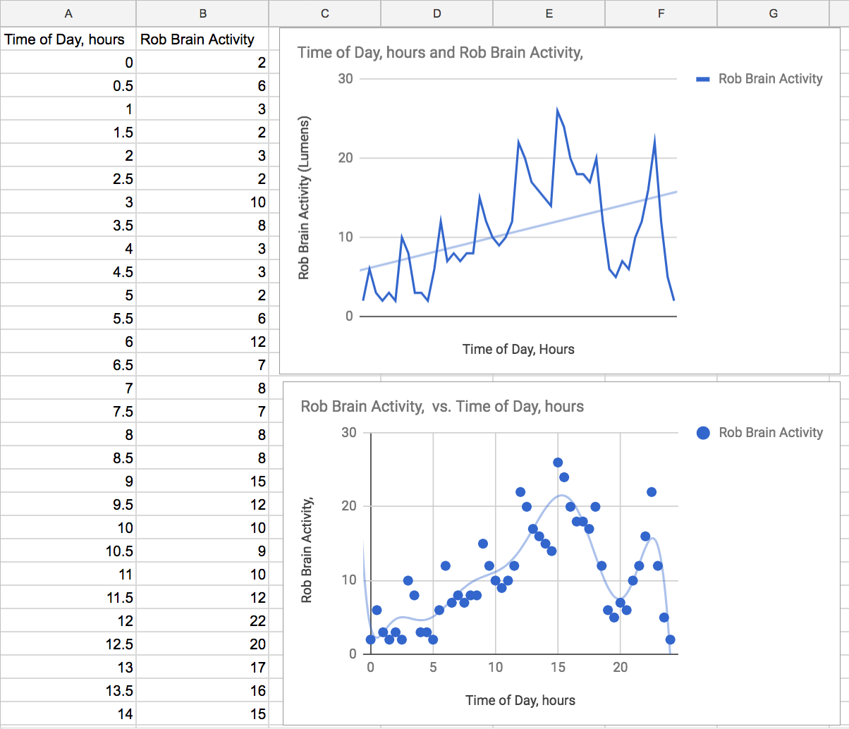 Rob started off the class with a powerpoint presentation that shared videos for graphing/charting exercises.