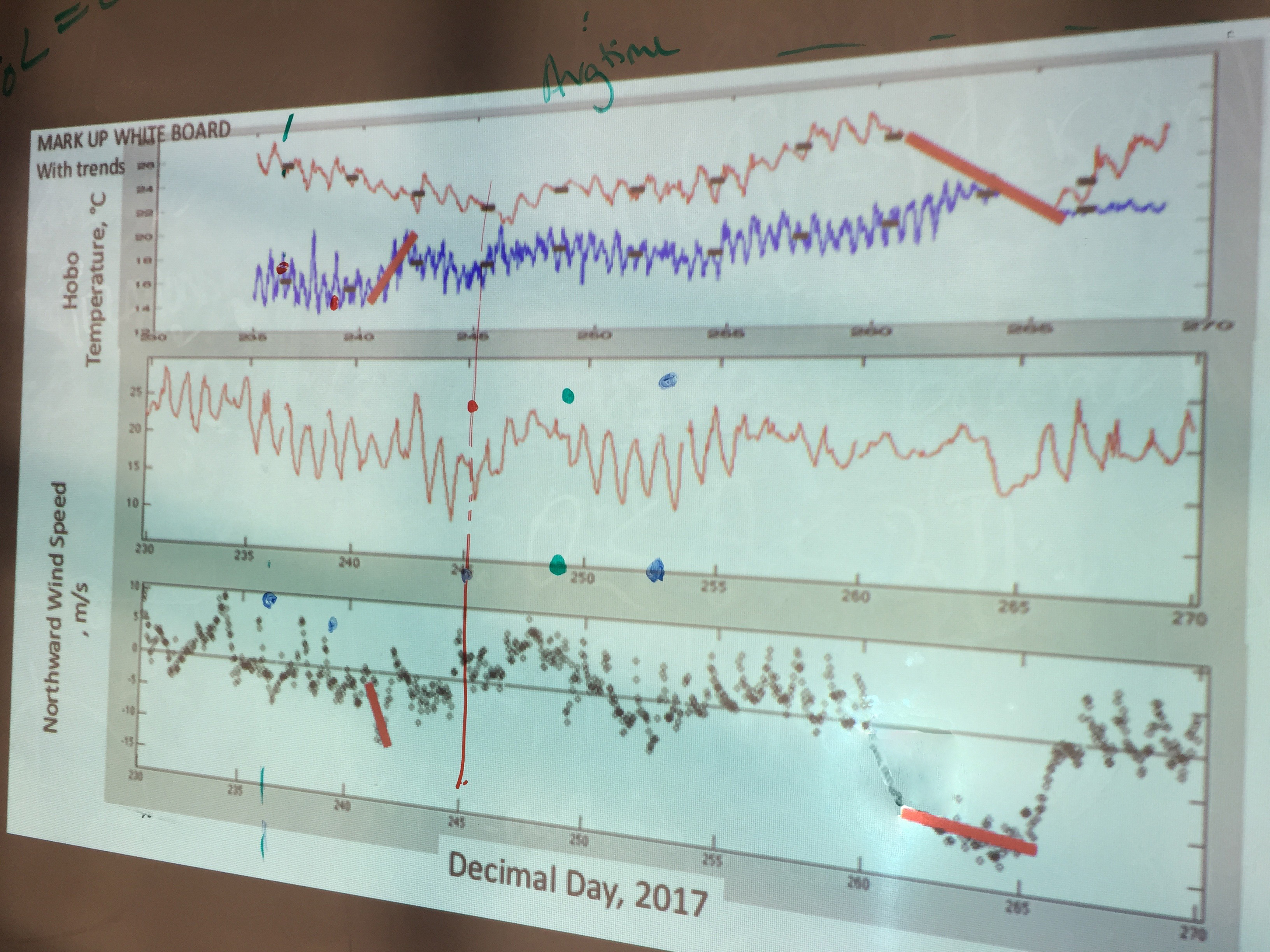 Students presented thoughts about their segment of the overall time series (average, trend, line equations).