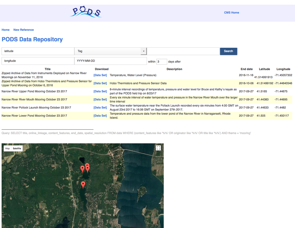 Students searched by tag, date, latitude/longitude, and free text to find interesting results depending on data characteristics.
