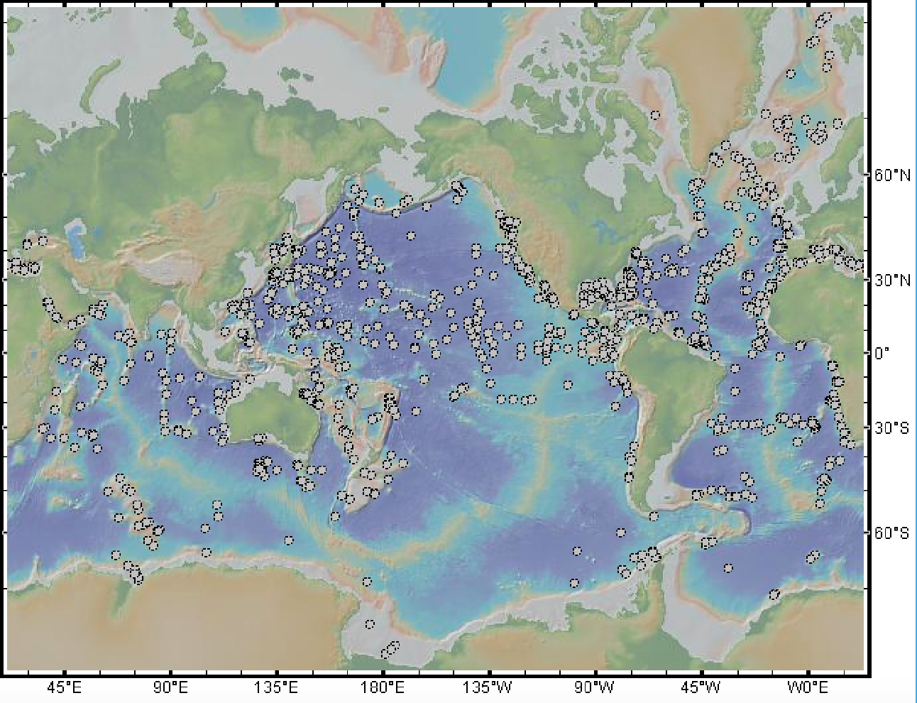 More than 3000 holes have been drilled in the seafloor worldwide since 1966 in order to provide insight to modeling approaches and groundtruth modeling results. A map of some of the drilling sites appears below: