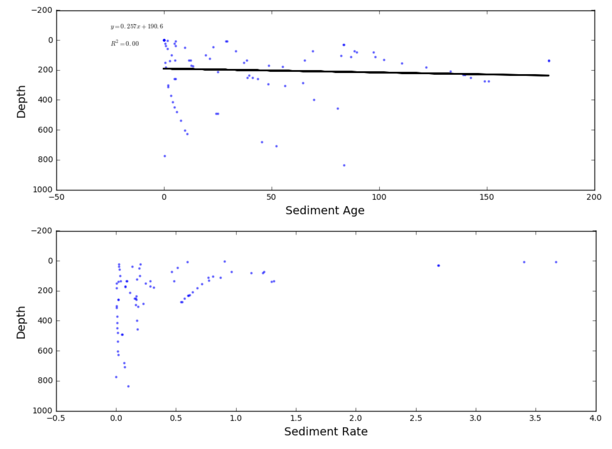 Students used Python in a Jupyter notebook setting to create scatter plots and trend lines of sediment age and growth rates compared to depth. They were asked to create ten separate plots for the ten drill sites shared by Rob.