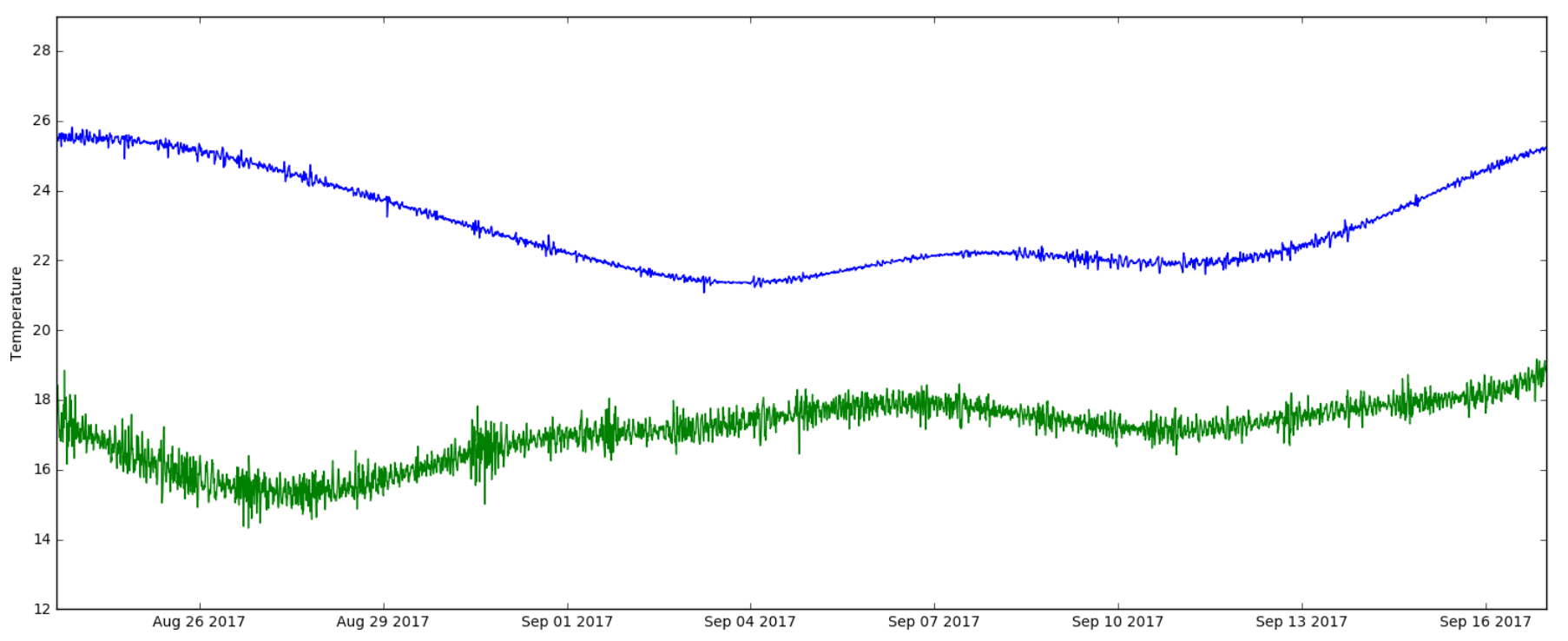 S_t3 = butter_bandpass_filter(surface_temp, (1/176), (1/3), fs, order=3) S_rsd_t3 = surface_temp - S_t3 S_t5 = butter_bandpass_filter(depth_temp, (1/176), (1/3), fs, order=3) S_rsd_t5 = depth_temp - S_t5