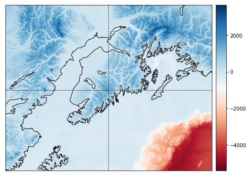Students created visualizations of the topography/bathymetry data through use of a Jupyter Python notebook. The