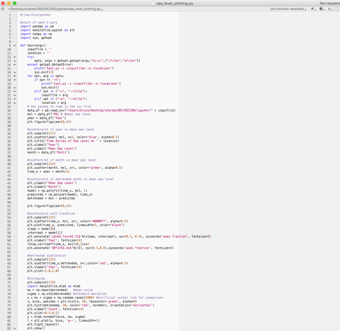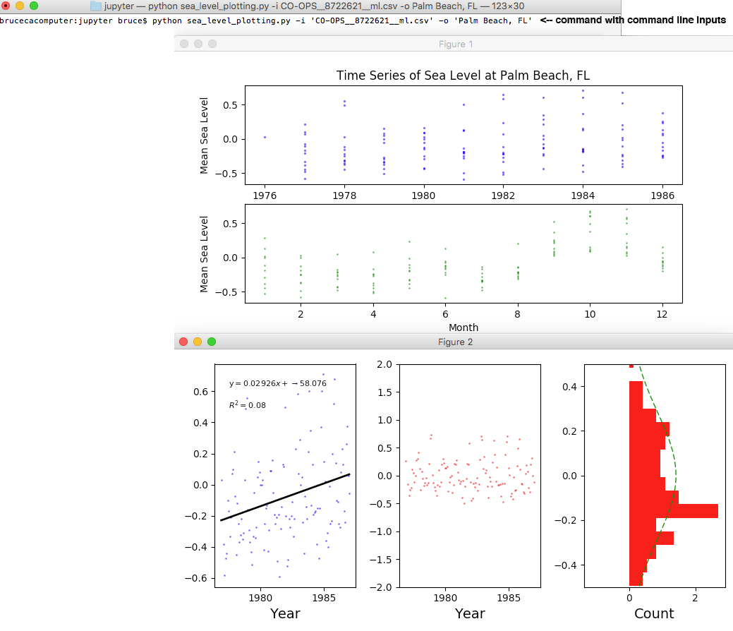 changed the units from feet to meters, and then saved the resultant data as a CSV file (using the default name CO-OPS__8722621__ml.csv). I put the file in the same directory as my Python script and ran the command: