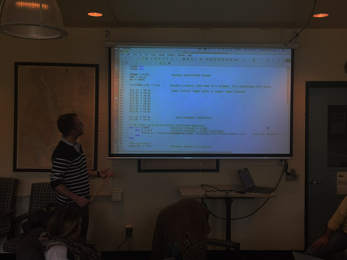 Chris ran an interactive session on MATLAB coding, using exercises to build stronger understanding of the syntax and semantics of the code.