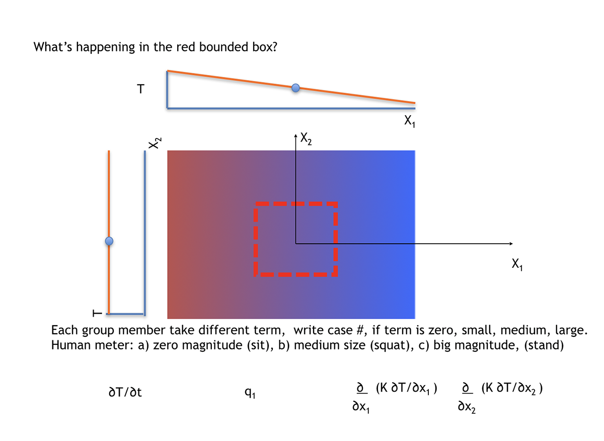 Chris explained that the focus of class would now change from a one-dimensional consideration to a two-dimensional consideration of heat flow and the energy equation.