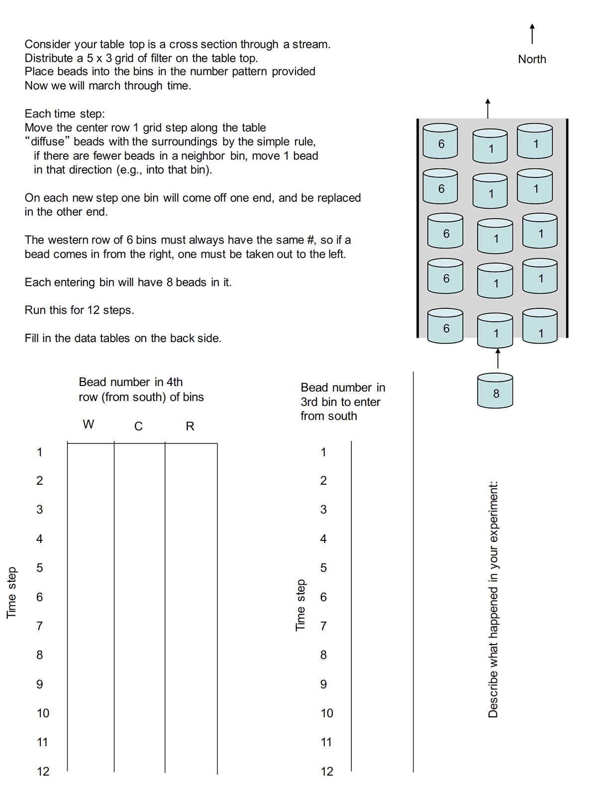 and then asked students to perform an advection simulation exercise as a game that mimicked the technique demonstrated on the blackboard: