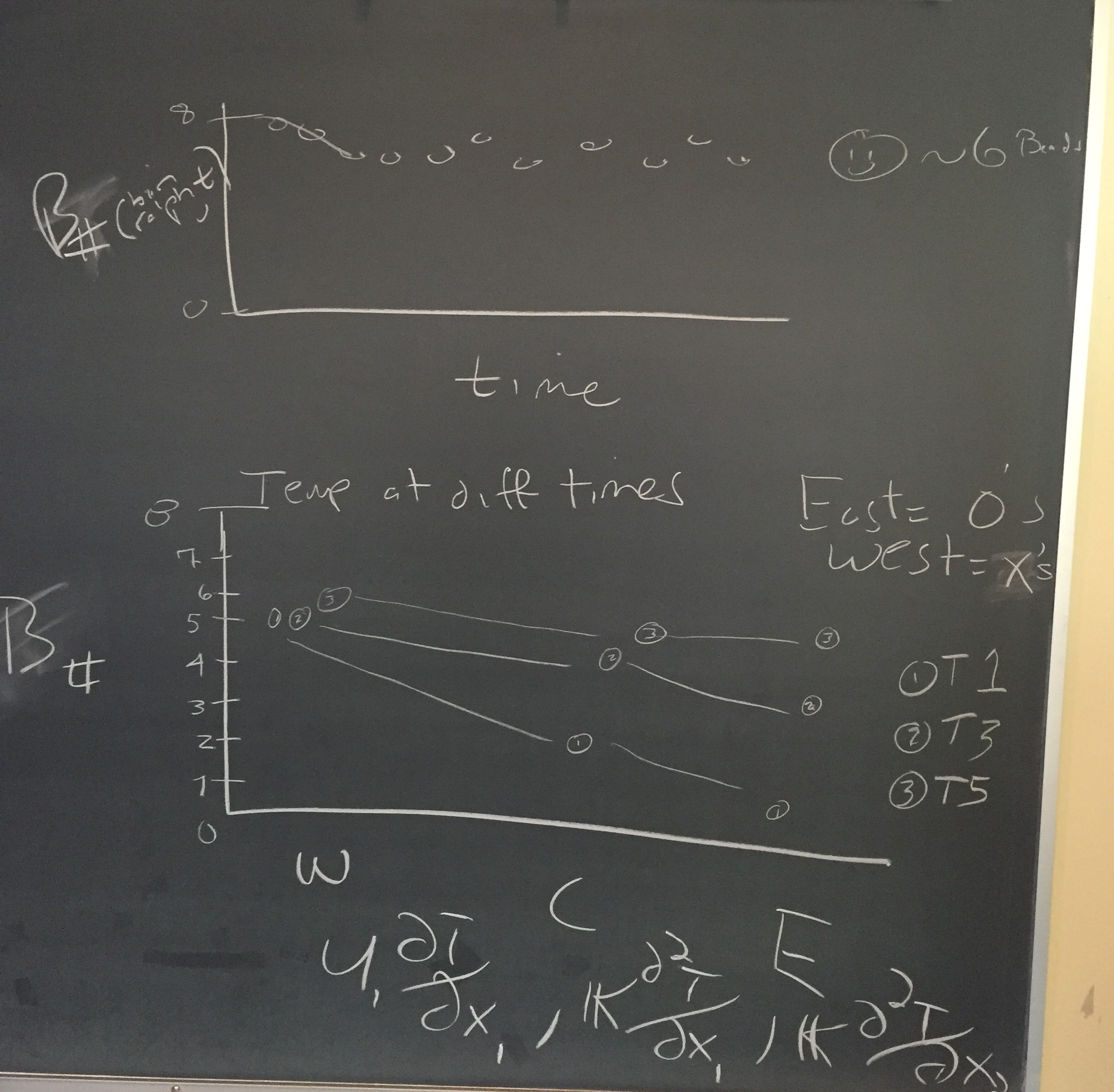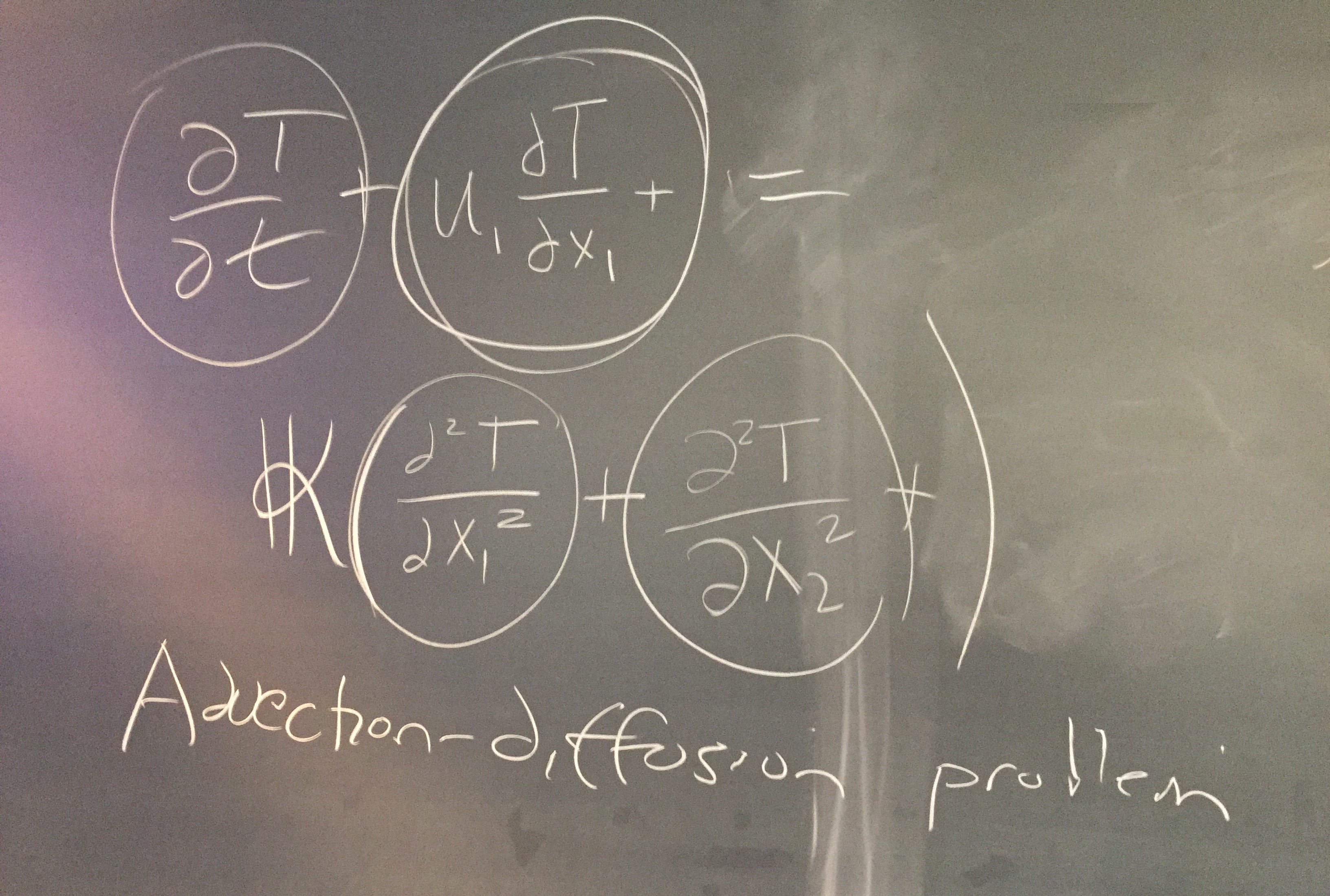 Students then took turns at the blackboard — writing out terms for the relevant advection-diffusion problem involved in the project scenario: