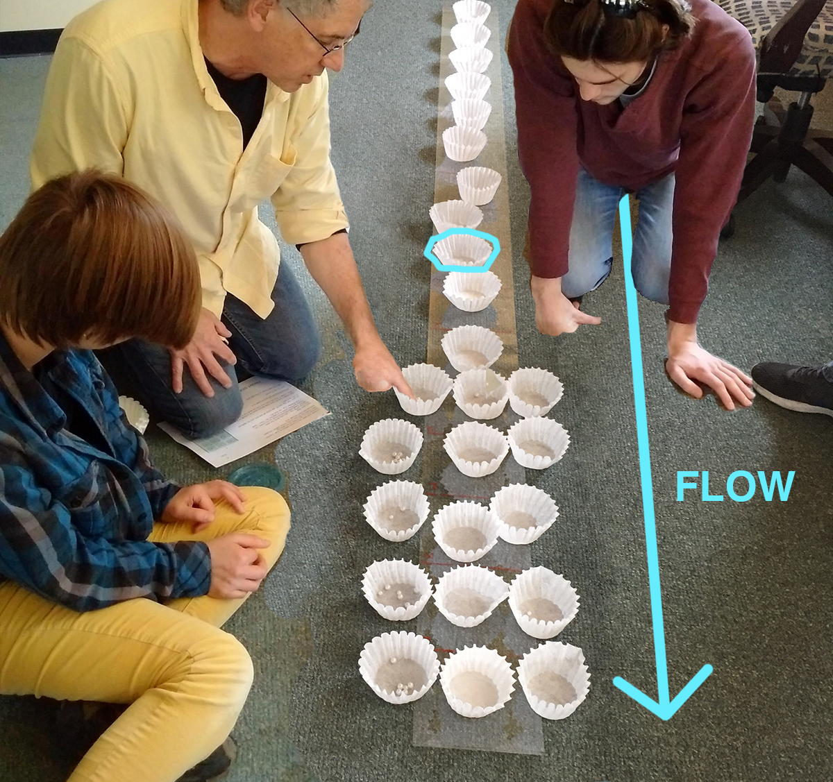 Students broke into teams to play out the advection-diffusion simulation while focusing on the relevant terms in the equation.
