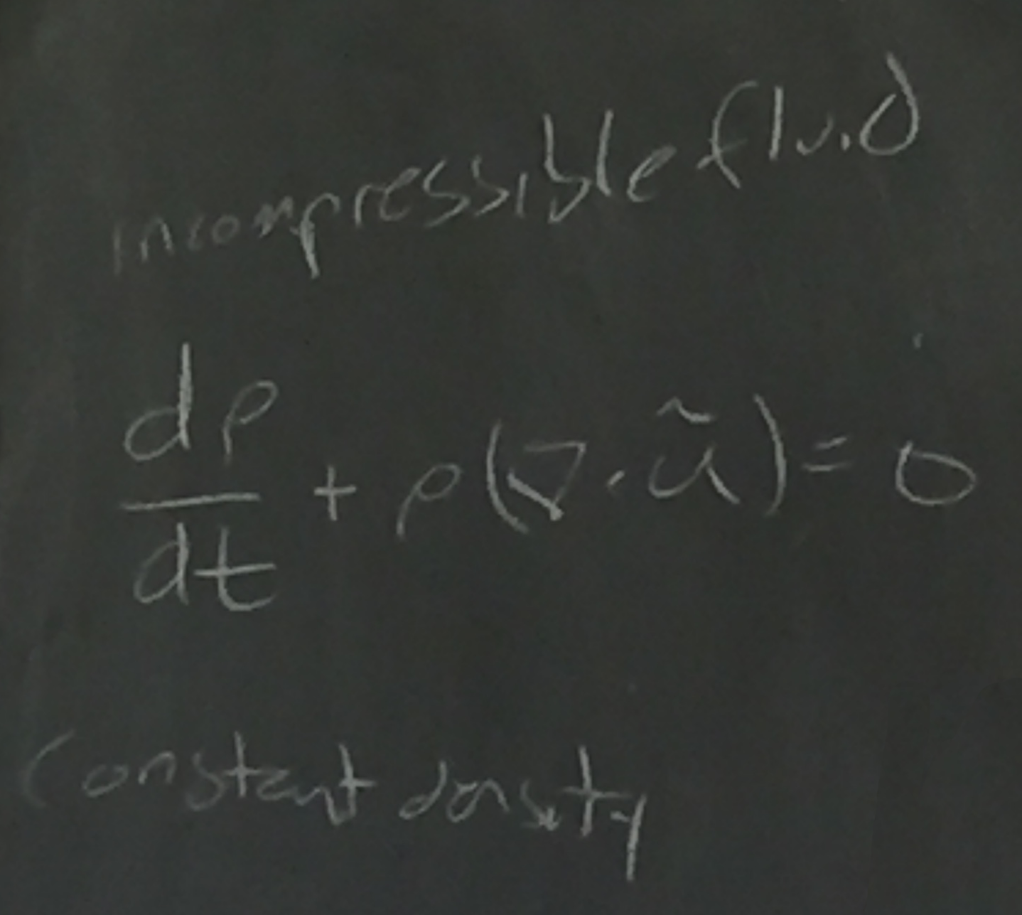 Chris reminded students that many of the terms are simplified by the assumption of an incompressable field (which is a reasonable assumption for the ocean):