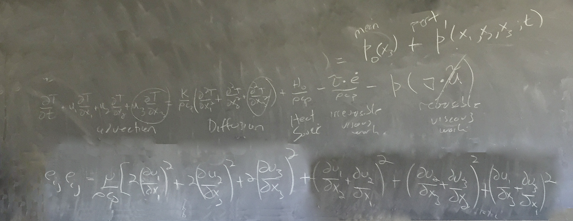 Chris finished the class by writing out the full hydrothermal dynamics equation: