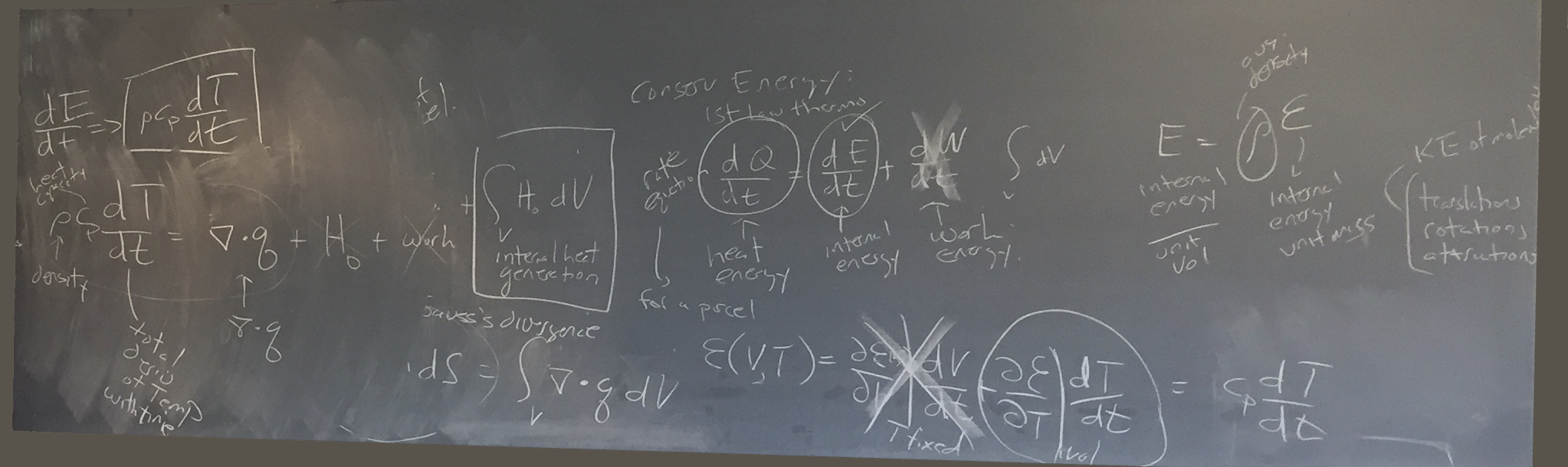 Chris suggested heat energy = internal energy + work energy (to be worked on later), whereby internal energy/unit volume = ρ * ε