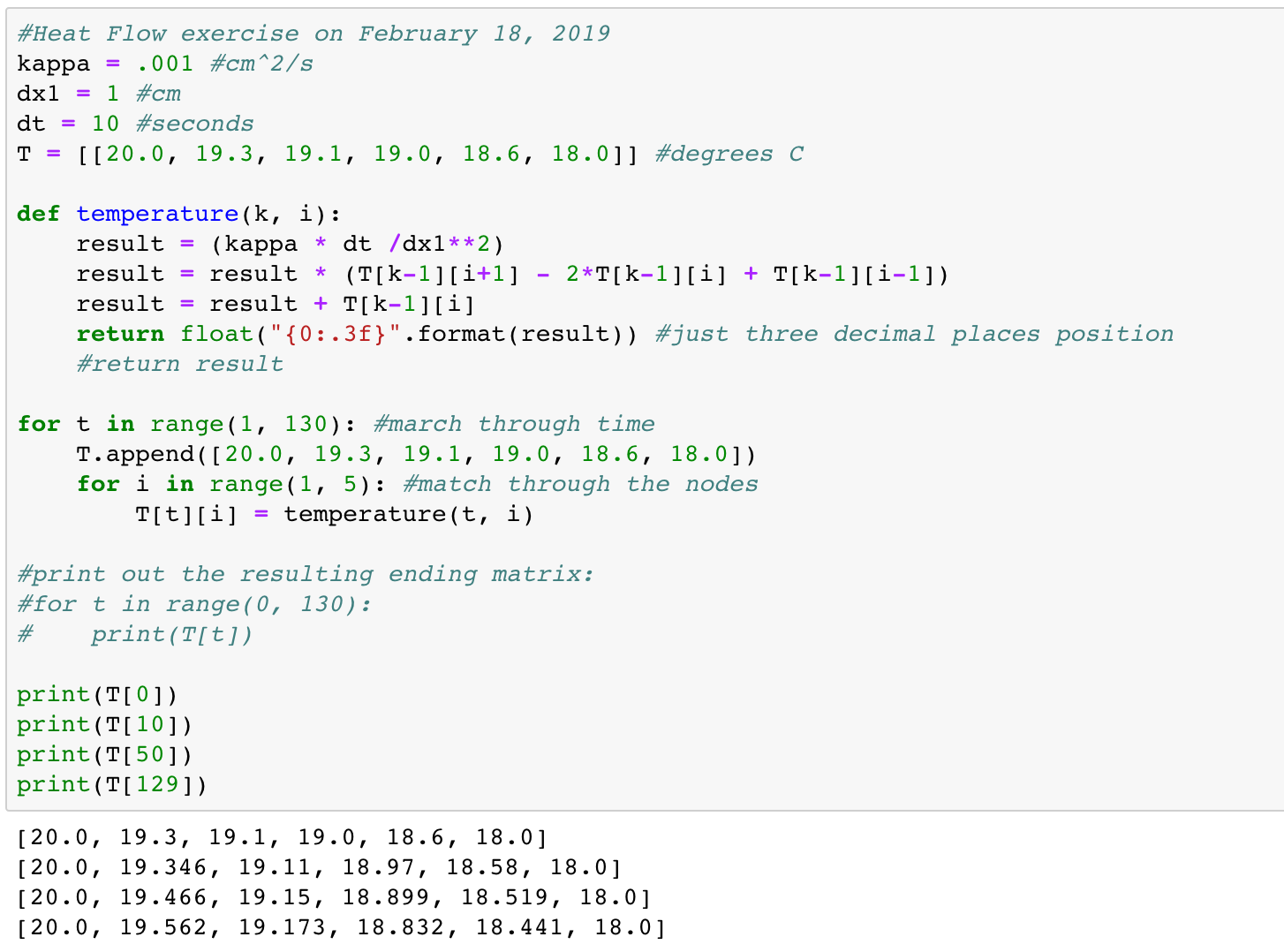 The calculation of heat flow per node is encapsulated in a temperature() function that does the calculation in three steps (passing in time and node as parameters).