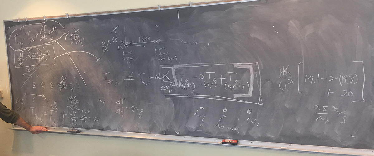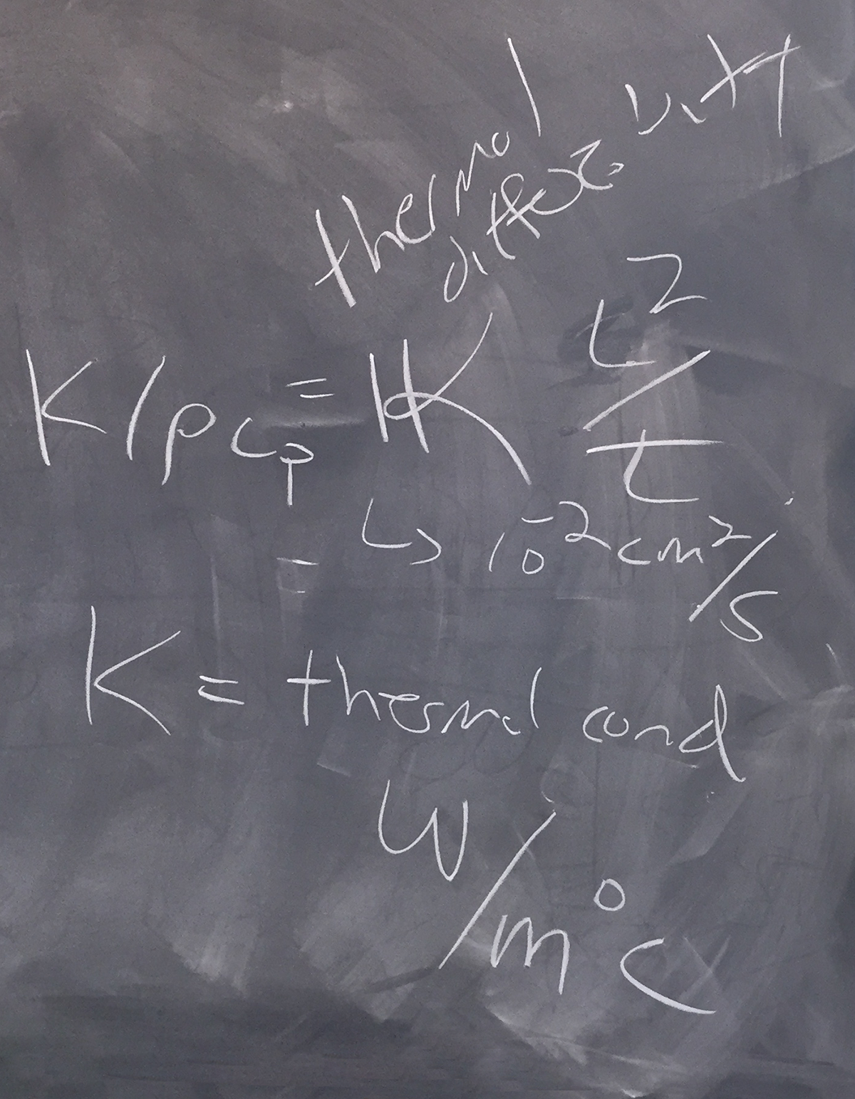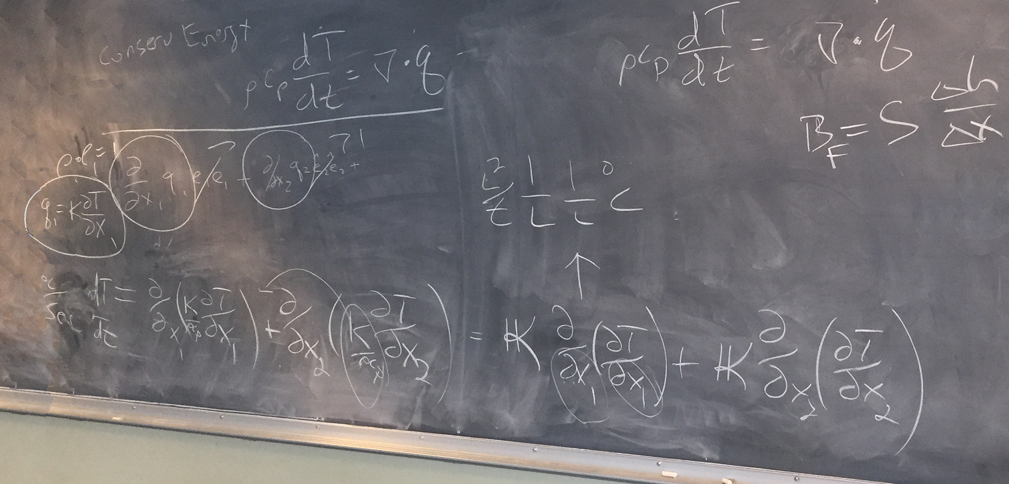Chris warmed us by reminding us of where we are on our progress with the conservation of energy equation (Fourier's Law):