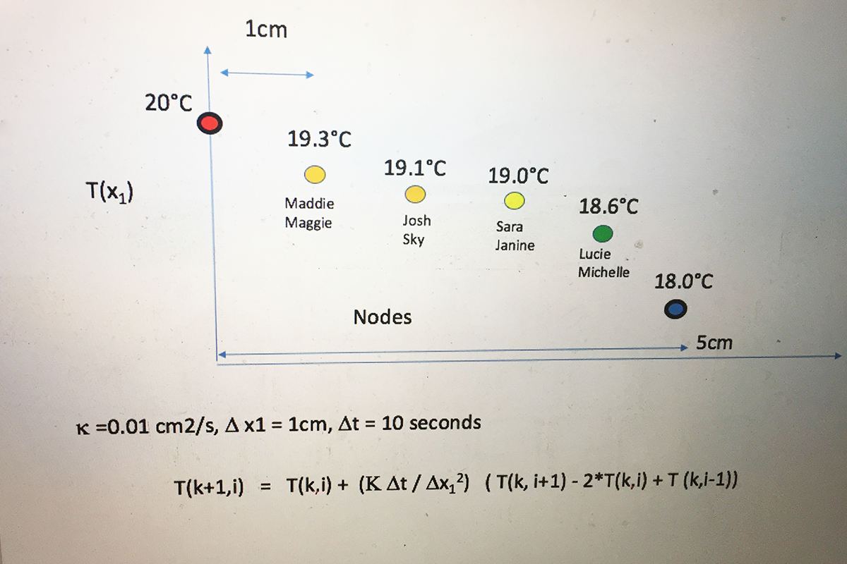 Chris then presented the class a parcel chain situation and broke the students into teams of two to calculate the heat flow for each node in the chain:
