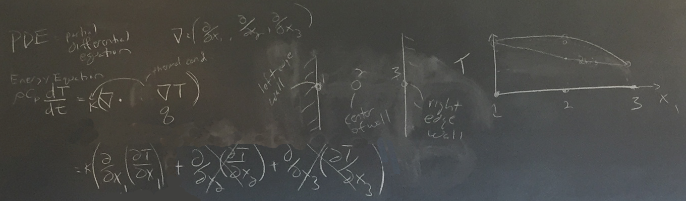 Chris performed the energy equation expansion in preparation for discussing a three node heat flow progression: